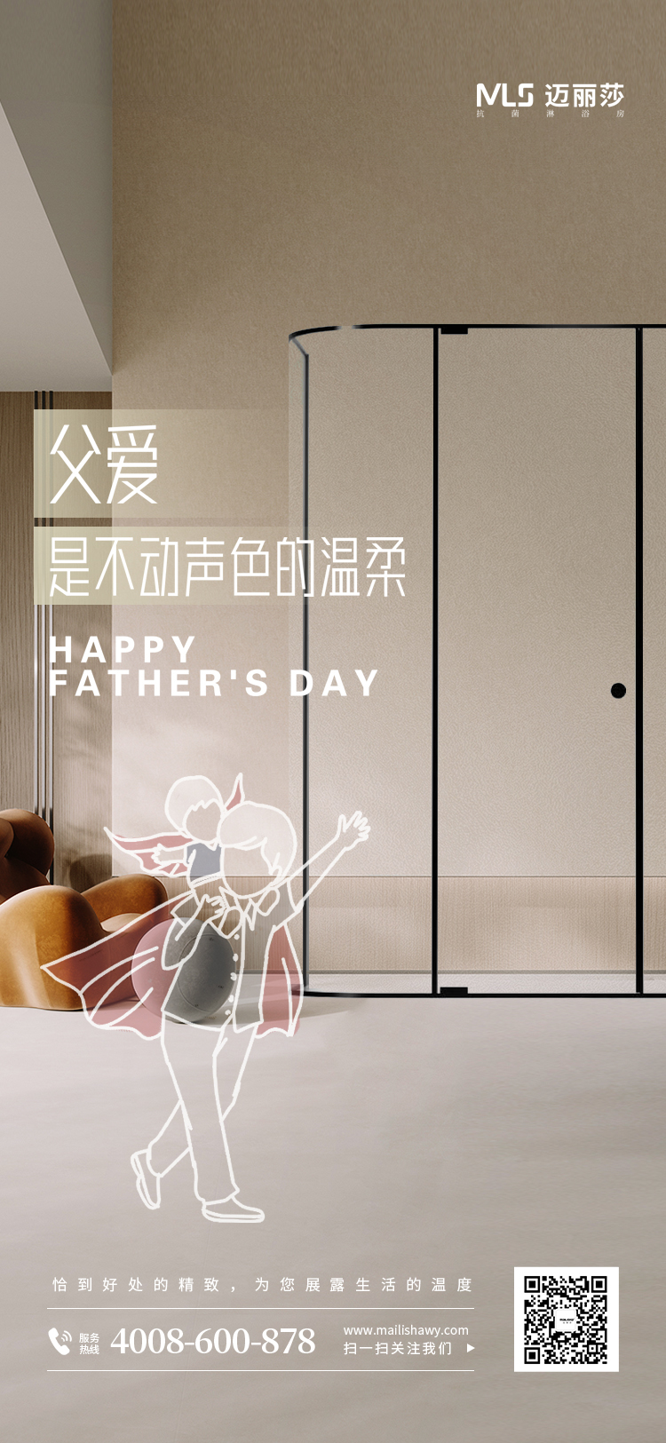 父亲节到了,愿每一位父亲在迈丽莎淋浴房的陪伴下,能在每日的沐浴时光里,洗去一身疲惫,放松紧绷的神经。让温暖的水流,如同我们对您深深的感恩,流淌在您心间。愿您岁岁安康,笑容常在,父亲节快乐!